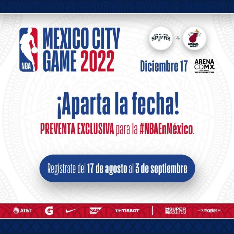 Hasta el momento no hay información con respecto a la venta de boletos para el enfrentamiento entre Spurs, que fungirán como locales, ante el Heat, que será el visitante, aunque a partir de este 17 de agosto hasta el 3 de septiembre, los interesados en asistir deberán registrarse en el portal www.nbaenmexico.com para recibir acceso a una preventa exclusiva.