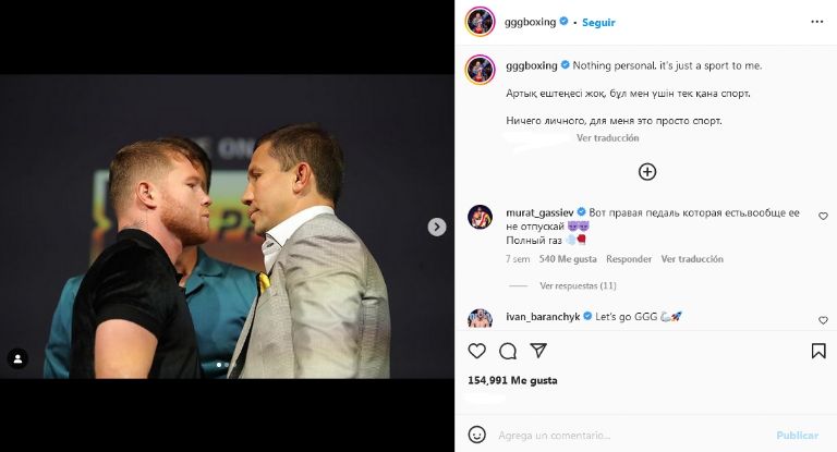 Golovkin agregó que no deja de pensar en que 'Canelo' hizo trampa previo a su segunda pelea en 2018 y pese a que Álvarez demostró que ingirió carne contaminada en México, como ha sucedido con otros deportistas, el kazajo no olvida ese suceso: "El doctor dijo que había resultados de pruebas de agua. Y cuando le pregunté, dijo ‘sí, creo que hizo trampa’. Y si a alguien en su equipo no le gustan mis palabras, pienso que es su problema", expresó.