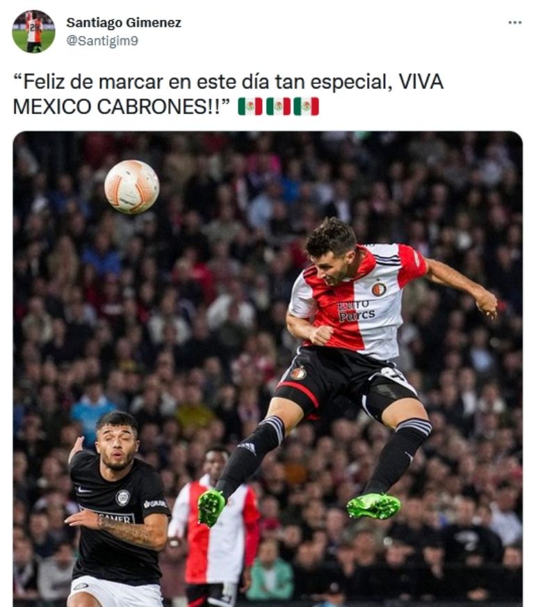 Cabe mencionar que Giménez dedicó su gol de ayer en la Europa League a México, pues lo hizo en 15 de septiembre, cuando se conmemora el Grito de Dolores: "Viva México, gloria a Dios. Seguimos trabajando muy duro. Feliz de seguir sumando al equipo" y "Feliz de marcar en este día tan especial, ¡VIVA MÉXICO CAB…!", fueron los mensajes que el ariete compartió mediante su cuenta oficial de Twitter.