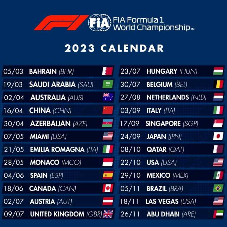 La presencia de 24 carreras en el calendario del Campeonato Mundial de Fórmula 1 de la FIA de 2023 es una prueba más del crecimiento y el atractivo del deporte a escala mundial. La adición de nuevas sedes y la retención de eventos tradicionales subraya la buena administración del deporte por parte de la FIA", mencionó Mohammed Ben Sulayem, presidente de la FIA.