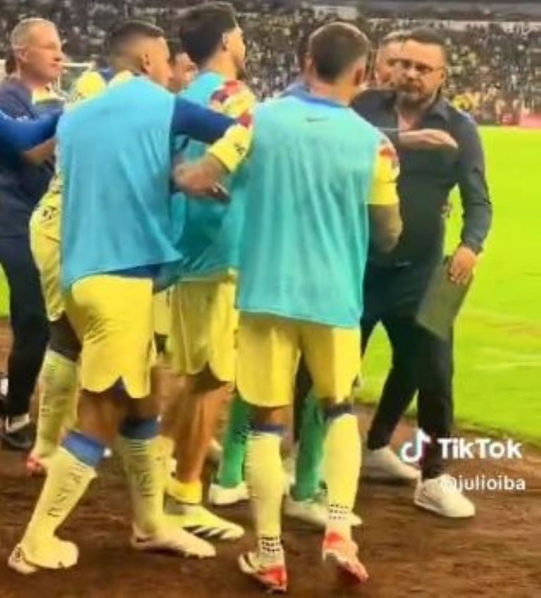 El entrenador de los Pumas pasó junto a la banca de América haciendo una seña como de contar dinero en referencia a un posible arreglo económico, lo que molestó a los jugadores azulcremas quienes saltaron para reclamarle. El técnico volvió para acercarse y hacerse de palabras por lo que tuvieron que intervenir miembros de los dos equipos para poder separarlos y evitar que pasara a mayores. Afortunadamente para ambos la situación no pasó a más.