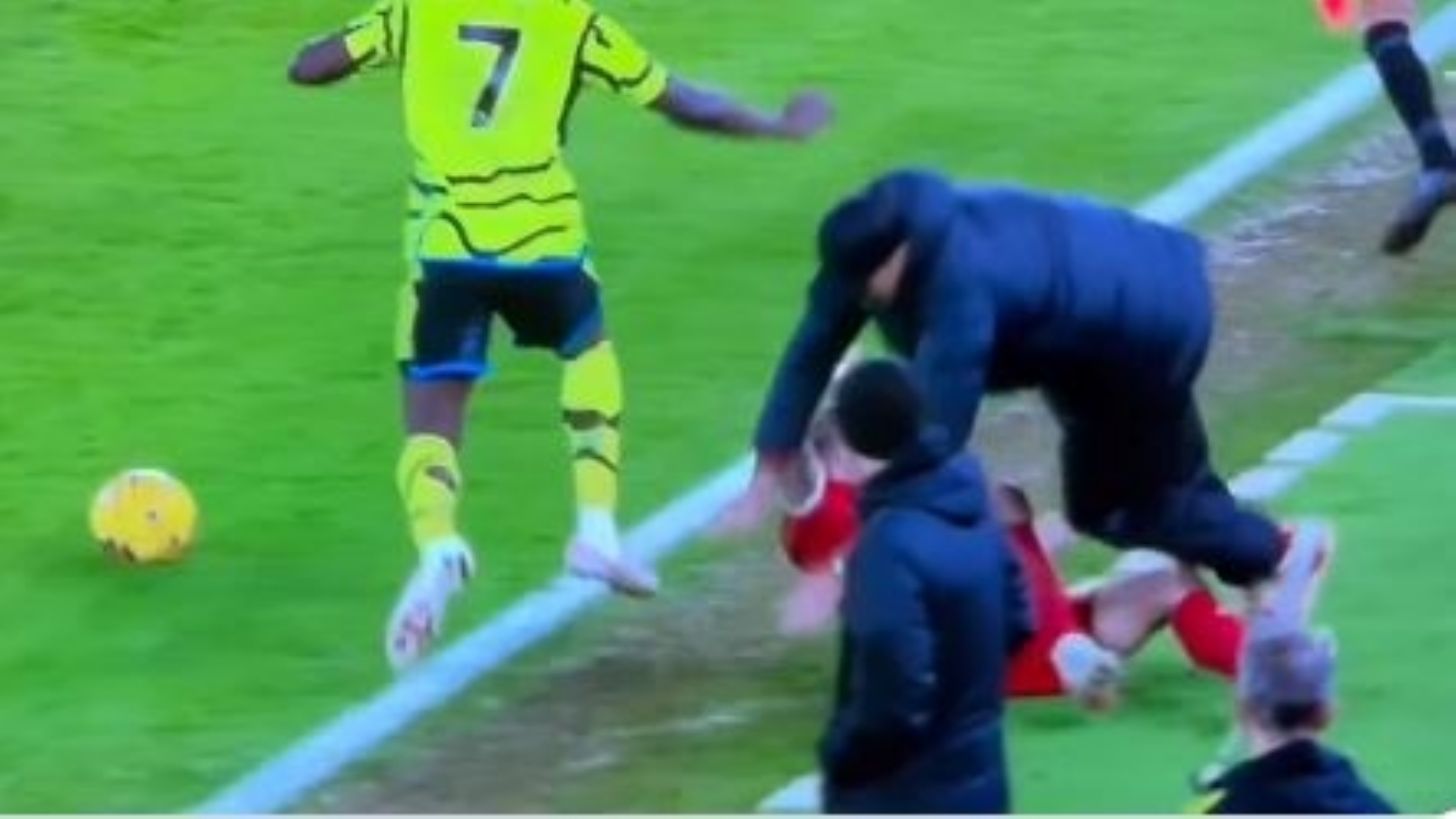 Corría la primera media hora de juego cuando en una jugada por la banda, muy cerca del área de bancas, Tsimikas competía por el balón con Bakayo Saka quien en una carga con el hombro derribó al defensa griego quien se llevó a su entrenador. Klopp voló por los aires y cayó de manera muy aparatosa sobre su propio jugador, tras lo cual Konstantinos se levantó muy adolorido y se llevó la mano al hombro por lo que fue atendido y tras determinar su lesión, tuvo que salir del campo al minuto 35 y en su lugar entró Joseph Gomez.