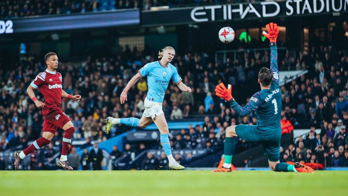Manchester, Inglaterra.- El delantero del Manchester City, Erling Haaland sigue escribiendo historia en la Premier League, ya que una vez más se hizo presente en el marcador para ayudar en la victoria de su equipo que esta vez se impuso 3-0 al West Ham United y con ese gol batió un nuevo récord de la primera división inglesa que lo coloca en la cima como el futbolista con más anotaciones en un torneo, sin importar el número de partidos.