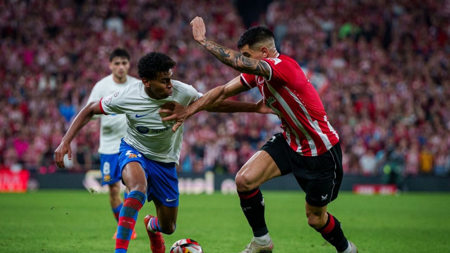 Lamine Yamal le dio la vuelta al partido al minuto 32 con un golazo desde el extremo del área grande que puso en la esquina inferior derecha del arquero. En la segunda mitad, el Athletic igualó las cosas luego de un pase exacto de Nico Williams para Oihan Sancet quien definió de cabeza al minuto 49. El empate perduró hasta el minuto 90 por lo que todo tuvo que decidirse en tiempo extra donde los locales mostraron su mejor versión.