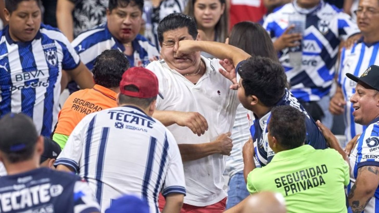 Mientras se daba por concluido el partido, en la tribuna del 'Gigante de Acero', como se le conoce al Estadio BBVA de Monterrey, comenzaron a pelear varios aficionados, lo que desató una riña campal en la que tuvieron que intervenir elementos de seguridad, así como autoridades.