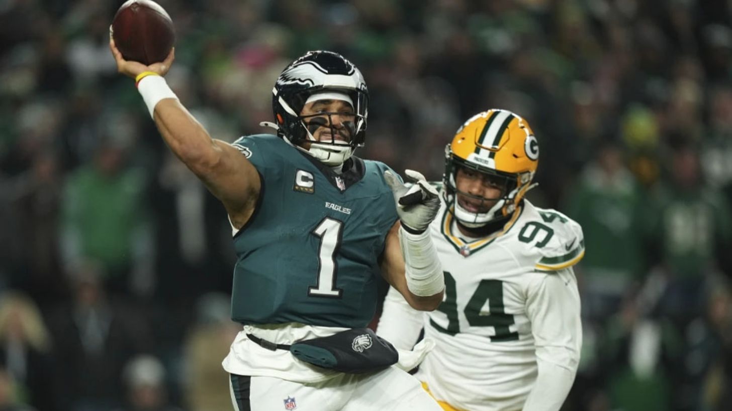 Hurts lanzó para unas modestas 131 yardas, pero jugó sin vacilación en su regreso después de tres semanas de ausencia por una conmoción cerebral en diciembre. Comenzó fuerte —seis pases completos consecutivos para abrir el juego— y mantuvo a raya a los Packers con un pase de anotación de 24 yardas a Goedert en el tercer cuarto que quedará para siempre grabado en el carrete de momentos destacados de postemporada de la franquicia.