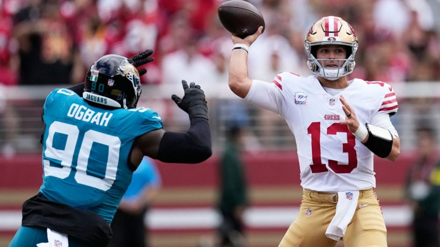 Purdy se lesionó en el primer encuentro de la temporada contra los Seattle Seahawks y se perdió los dos siguientes. Regresó en la Semana 4 y tuvo dificultades en una derrota ante Jacksonville.
