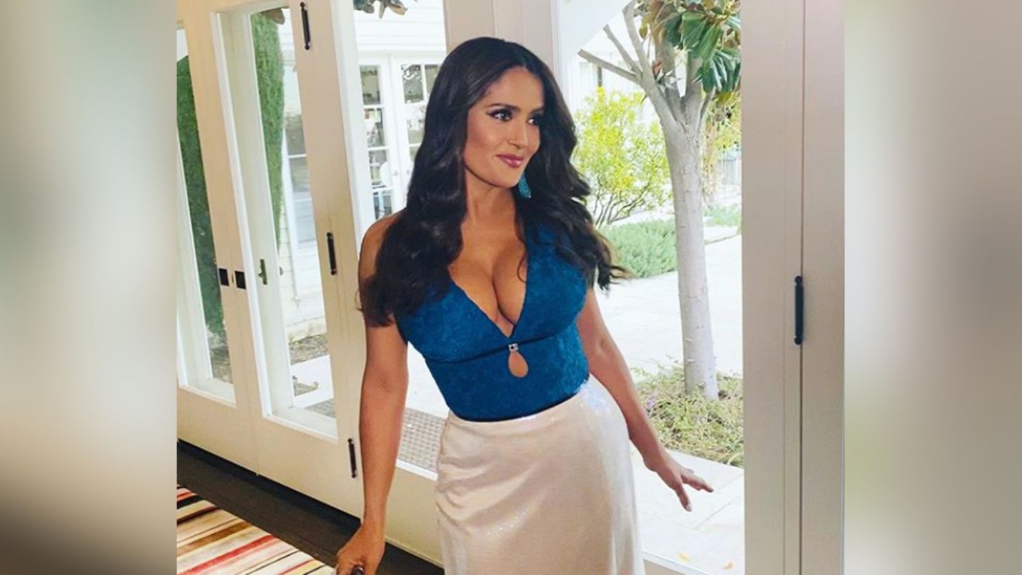 California, EU. - Salma Hayek conmocionó a todos al llegar a la alfombra roja de los Globos de Oro 2020 con un muy provocativo escote que dejaba entrever su pecho.