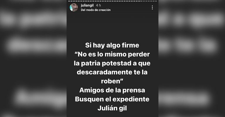 Si hay algo firme: No es lo mismo perder la patria potestad a que descaradamente te la roben. Amigos de la prensa busquen en el expediente Julián Gil", escribió el actor.