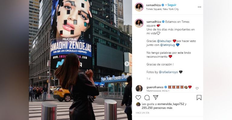 Ciudad de México.- La actriz Samadhi Zendejas, por medio de su cuenta de Instagram compartió una motivadora imagen en la cual se le pudo ver presumiendo sus felicitaciones en Times Square.
