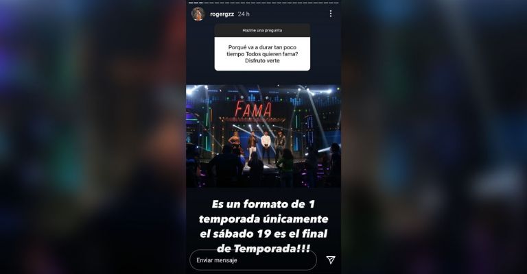 ¿Porque va a durar tan poco Todos Quieren Fama?", preguntó una seguidora, a lo que Roger González respondió "Es un formato de una temporada".