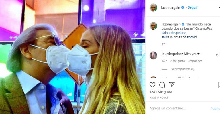 Un mundo nace cuando dos se besan", con este texto de Octavio Paz, Lorenzo acompañó la foto.