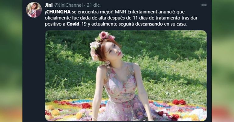 - Chungha dio positivo al Coronavirus: La cantante de K-pop Chungha dio positivo por Covid-19 según informó su agencia de representación, así como otras personas de la industria. MNH Entertainment comentó en una página de fans sobre la solista que tuvo contacto con un paciente ya contagiado por el virus lo cual provocó que se hiciera pruebas al instante dando positivo. La cantante tuvo que suspender todos sus planes para estar en cuarentena y publicó que lo siente mucho pues fue muy cautelosa, pero debió serlo más.