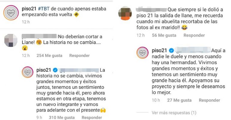 Cuando un usuario sugirió que a Piso 21 le había "dolido" la salida de Llane por su acción de recortarlo de las imágenes, el grupo replicó: