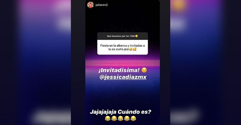 Dicha invitación surgió a través de las historias de Instagram, donde Julio Ron preguntó a sus seguidores sobre propuestas para celebrar a sus 100 mil seguidores, una de las ideas fue: "Una albercada y de invitadas, a tu excuñada".