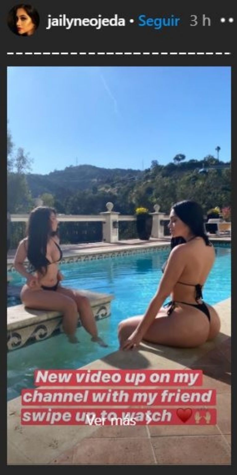 Por otro lado, Jailyne de 22 años se mostró muy coqueta mediante sus historias de Instagram donde se le aprecia sentada a la orilla de la piscina mientras usa un minúsculo bañador de color negro.