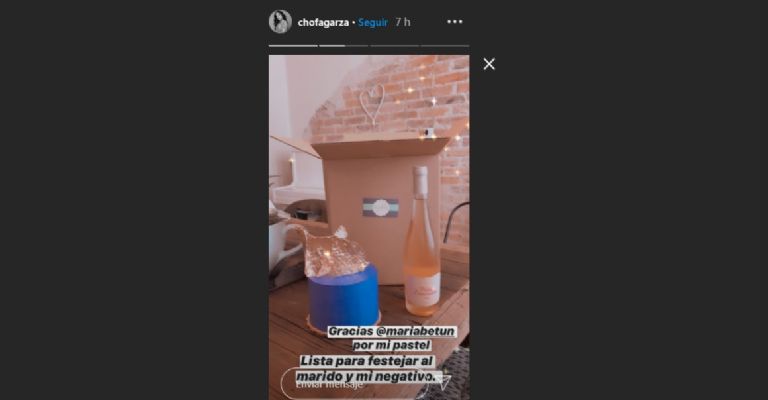 Todo parece indicar que la intérprete obtuvo los favorables resultados, ya que la tarde de este lunes publicó en Historias de Instagram una fotografía de un pastel y una botella, los cuales dijo servirían para celebrar su "negativo".