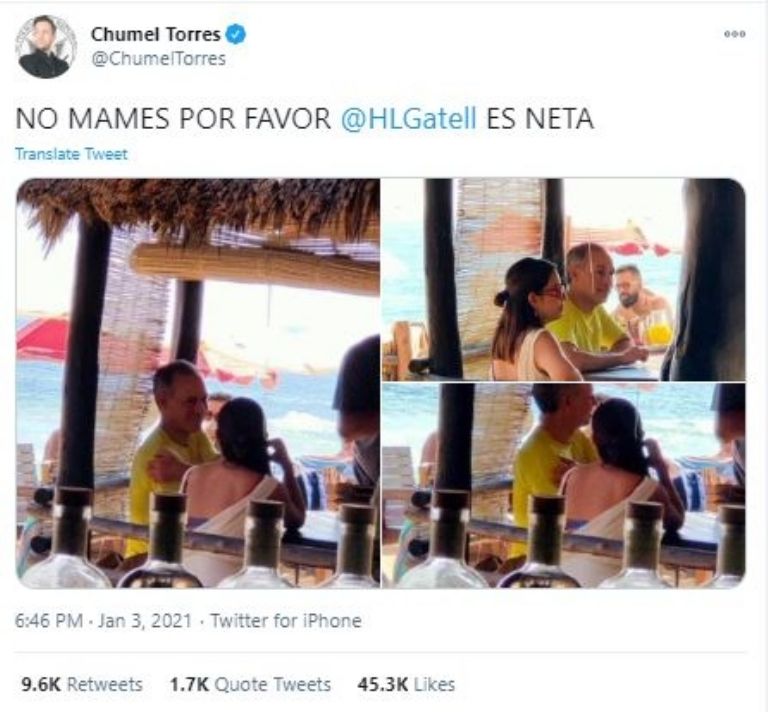 Fue por medio de su cuenta en Twitter que Chumel se lanzó en contra del subsecretario de salud que se fue de vacaciones en plena pandemia, escribiendo un "no ma..., por favor @HLGatell es neta", en compañía de las fotografías que no han dejado de circular.