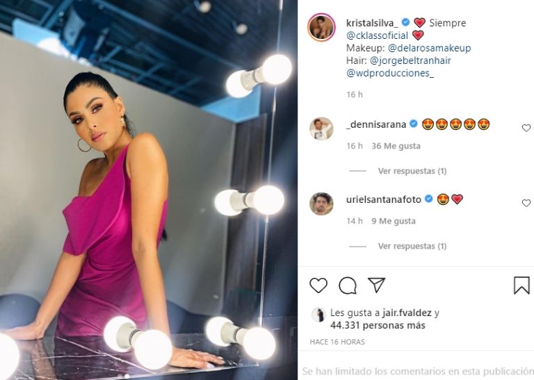 En esta ocasión en la imagen se puede ver a Kristal modelando frente al espejo mientras lleva un coqueto vestido color fucsia que resaltó su color de piel, llevó el cabello sujeto en una 'ponytail' y unos pendientes color dorado.