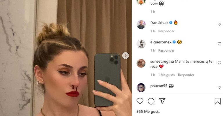Durante la mañana de este domingo, la menor del clan Castro-Rivera dejó sorprendidos a sus fans pues compartió un par de selfies a través de su cuenta de Instagram en la que aparece con una mancha de sangre justo en la nariz.