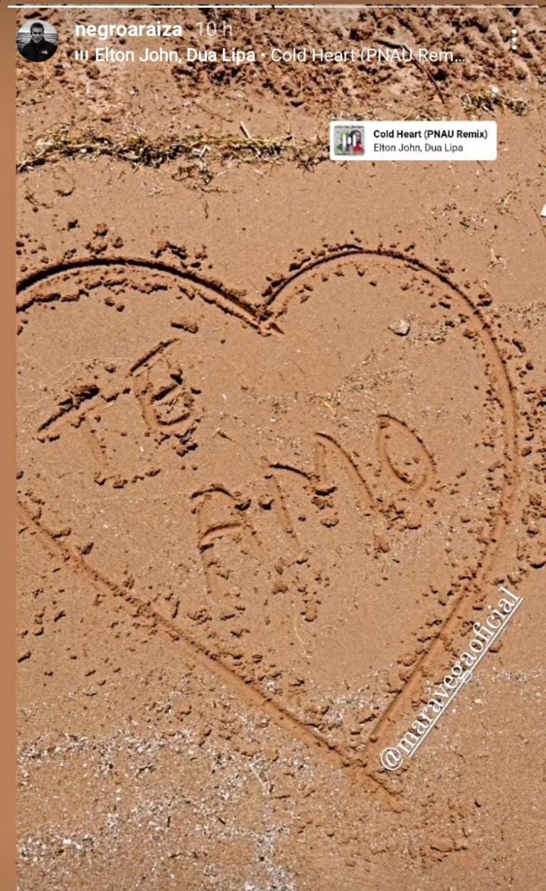 Resulta que el hijo de la primera actriz Norma Herrera dibujó un corazón en tierras peruanas y escribió "Te amo", le tomó foto, la subió a sus redes con la canción Cold heart y etiquetó a Margarita.