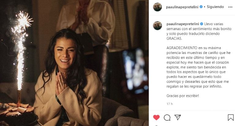 AGRADECIMIENTO en su máxima potencia las muestras de cariño que he recibido en este último tiempo y en especial hoy me hacen que el corazón explote, me siento tan bendecida en todos los aspectos que lo único que puedo hacer es quedármelo todo conmigo y desearles que esto que me regalan se les regrese por infinito", escribió.