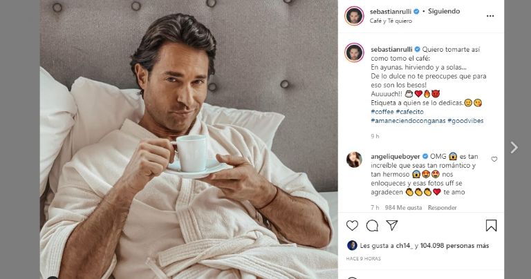 Quiero tomarte así como tomo el café: En ayunas, hirviendo y a solas… De lo dulce no te preocupes que para eso son los besos! ¡Auuuuch! Etiqueta a quien se lo dedicas", escribió.
