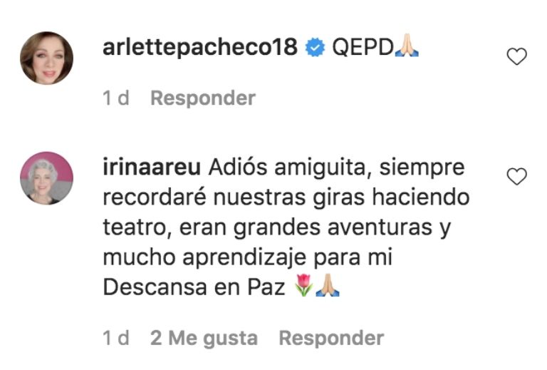 Adiós amiguita, siempre recordaré nuestras giras haciendo teatro, eran grandes aventuras y mucho aprendizaje para mí", escribió Areu.