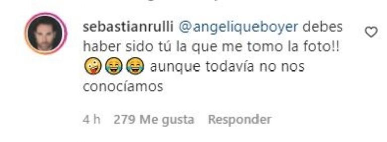 Finalmente, Sebastián Rulli acusó a Angelique Boyer de haber sido quien le tomó la fotografía, esto a pesar de que en aquel entonces no se habían conocido. Esto es porque la actriz goza de retratar a su novio en los momentos más inesperados posibles, cosa que ha dejado en claro varias veces.