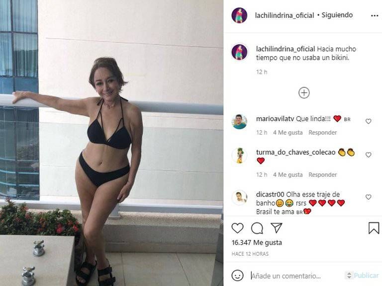 Fue a través de su cuenta de Instagram donde estrella que da vida a La Chilindrina del programa El Chavo del 8 compartió un par de fotografías en las que se luce con el ligero atuendo en color negro de dos piezas con el que dejó con la boca abierta a sus fans.