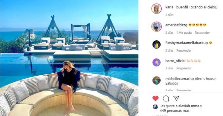 Y pese a que ha sido visto de distintas formas junto al cantante, en los últimos días fue ella misma la que reveló que estaba en la casa de la playa de Alejandro, pues compartió una fotografía desde el lugar en el que "tocó el cielo".