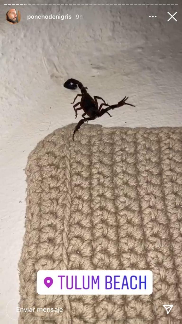En las imágenes, De Nigris aparece muy contento disfrutando del lugar, sin embargo, durante su estadía, el también modelo se llevó una gran sorpresa este viernes al interior de su cabaña, cuando de repente se encontró con un alacrán a lado de su cama.
