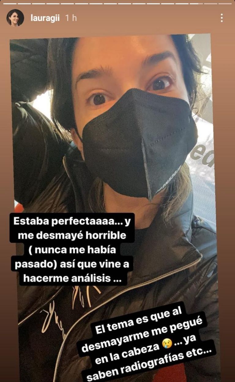 Laura detalló que durante la tarde de ayer martes sufrió un terrible desmayo sin razón y durante la caída se dio un golpe en la cabeza. Aunque sabe que se encuentra perfecta y descartando estar embarazada, la conductora explicó que prefirió acudir a realizarse estudios y radiografías para descartar cualquier complicación.