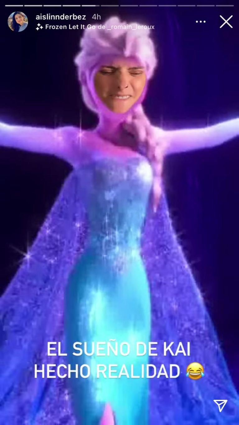 Con un filtro de la reconocida red social, la famosa hermana de Vadhir y José Eduardo Derbez, entretiene a su hija quien la ve disfrazada de 'Elsa' el personaje principal de la película animada de Disney, Frozen.