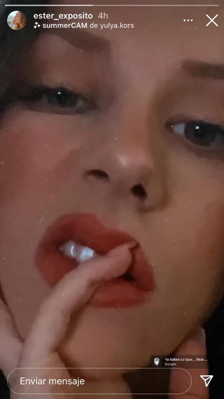 El clip enmarca el rostro de la actriz española, que triunfó a partir de su participación en la serie de Netflix, Élite. La cámara logró capturar la intensa mirada y los finos rasgos de su cara.