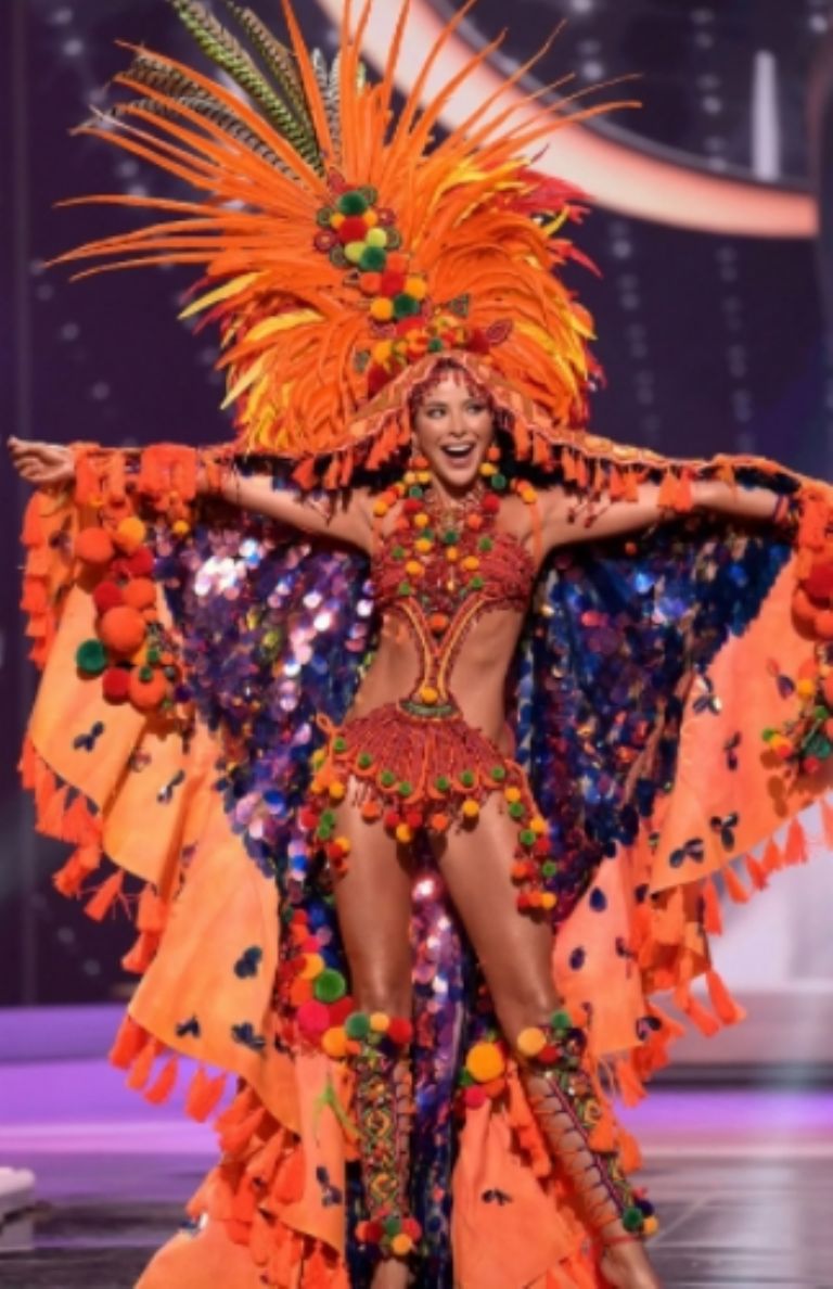 Laura Olascuagua: La candidata por Colombia deleitó los ojos de los espectadores con su muy alegre traje que habrá fascinado a más de uno. Usó un vestuario pensado por Blanca Fernández, que alude a la Diosa de la Makuira, protagonista de una fábula wayuu.