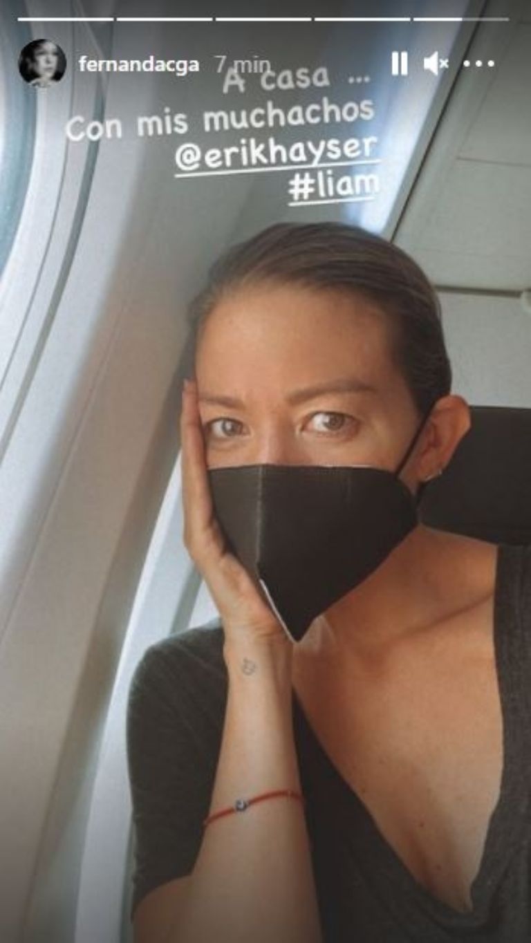 Minutos más tarde de esta publicación, Fernanda compartió una imagen más para hacer saber que iba camino a casa junto a sus adorables hombres, Erik Hayser y Liam.