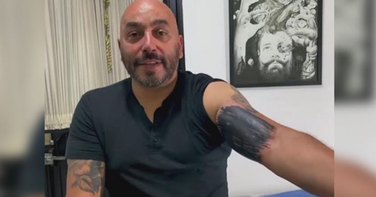 Algunos meses después Rivera confirmó que se había tatuado el rostro de la bella mujer y que le prometió a Belinda jamás quitarlo o cubrirlo, pero esa promesa 'El Toro del Corrido' ya la rompió en días pasados cuando lo cubrió con una mancha negra.