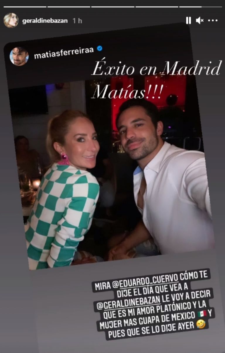 Dije que el día que viera a Geraldine le iba a decir que es mi amor platónico y la mujer más guapa de México y pues se lo dije ayer", escribió el actor.