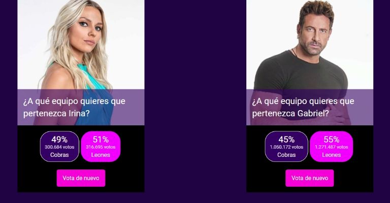 La votación ya está abierta en la página web de Canal 5 y es evidente el rechazo del público hacia Irina, pues mientras Gabriel ya acumula más de dos millones 300 mil votos, ella apenas tiene poco más de 600 mil.