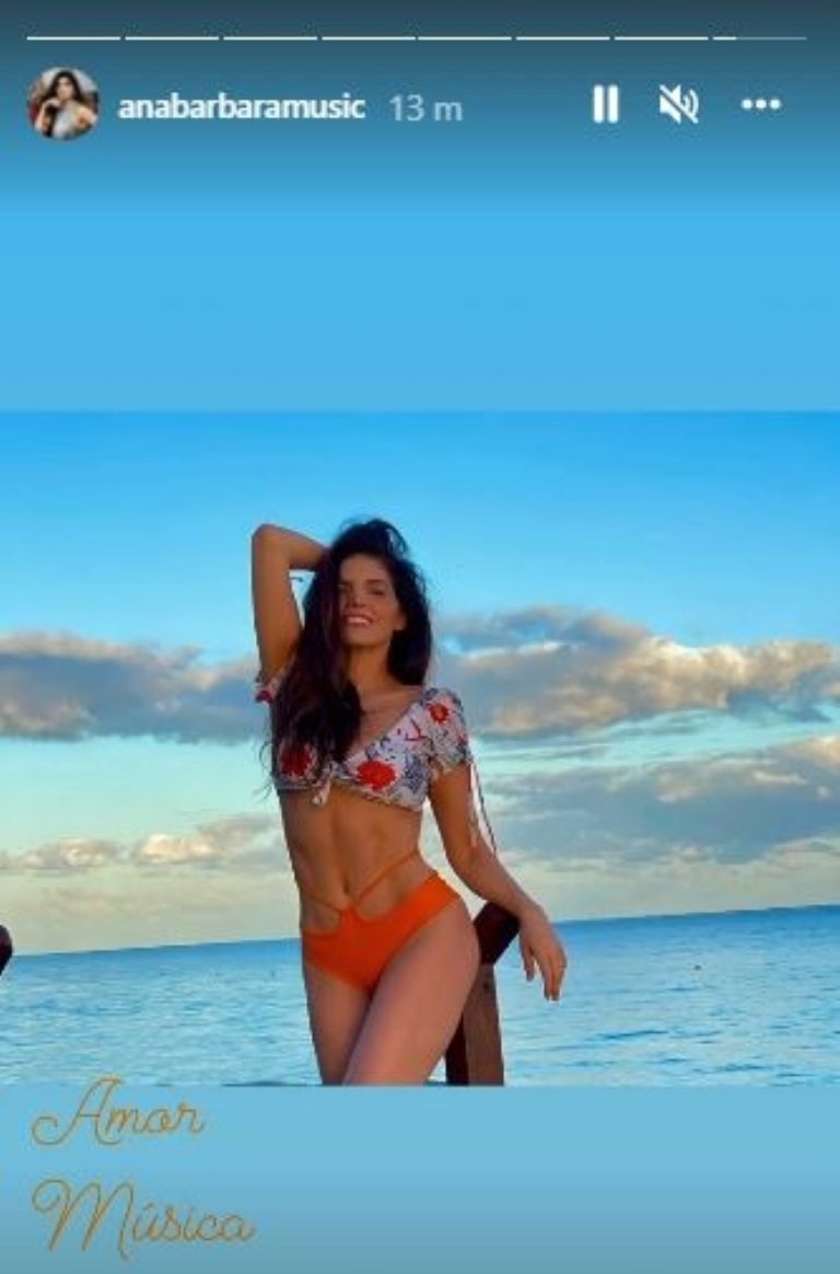 Este look que usó para disfrutar de sus recientes vacaciones, consiste en un entallado bañador en color blanco y naranja. Esta prenda, además de acaparar las miradas por ser tan pequeño, llamó la atención por dejar al descubierto el increíble abdomen marcado de la también conductora.