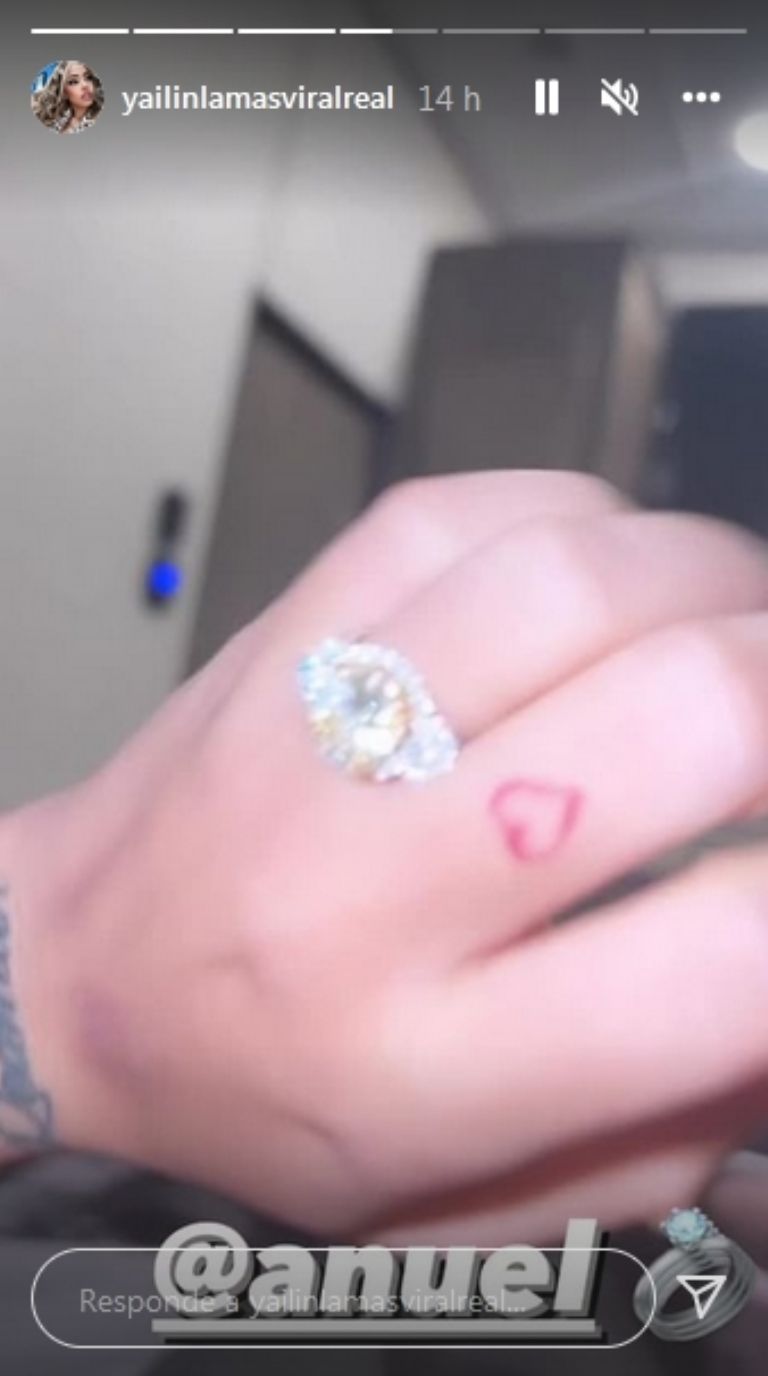 Según se puede apreciar en el clip, el puertorriqueño le entregó una joya de diamantes, misma que colocó en el dedo anular de su mano izquierda: "ese candado no tiene llave, apunta e'bala tienen que abrir ese candado, a punta e'bala", a lo que Yailín responde: "una mujer comprometida ya. ¡Hay boda señores!".
