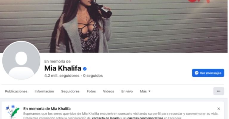 Ciudad de México.- Los seguidores de Mia Khalifa se alarmaron durante algunas horas debido al fuerte rumor que surgió acerca del fallecimiento de la exactriz de cine para adulto. Las teorías se originaron a partir de que la página de Facebook de la modelo se convirtió en un perfil conmemorativo que se utiliza para identificar a las cuentas activas de personas que murieron.