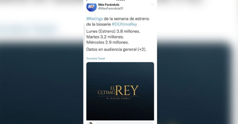 El inicio de El último rey. El hijo del pueblo' fue extraordinario pues tuvo un alcance de 8 millones de televidentes", informaron.
