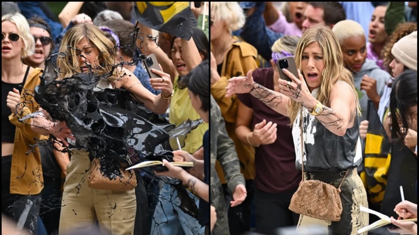 Resulta ser que, durante la mañana de este lunes, 29 de julio, Jennifer Aniston se encontraba grabando la mencionada serie, en una locación de Nueva York, Estados Unidos, en medio de lo que parece ser una protesta, cuando de pronto, uno de los extra le arroja aceite falso, color negro. Evidentemente, este hecho fue parte de la escena; sin embargo, las imágenes filtradas por medios estadounidenses podrían alterar a los fans, pensando que todo fue real.