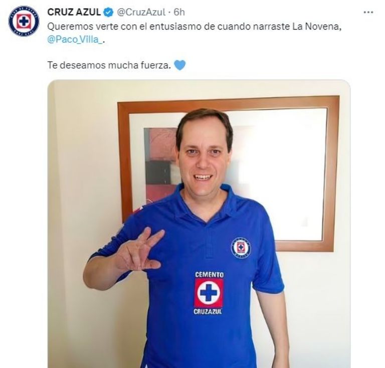 El equipo rojiblanco respondió al post de Villa con un mensaje de ánimo "¡VENGA, PACO! Eres uno de los mejores narradores de México, nos has emocionado incontables veces y ahora nos toca a nosotros animarte para que ganes este partido. Te deseamos pronta recuperación y enviamos un fuerte abrazo de toda la familia Rojiblanca". La liga MX a través de su cuenta de Twitter también envió fuerza al narrador deportivo. "Mucha fuerza, Paco! ¡Estamos contigo! Te deseamos una pronta recuperación", escribieron.