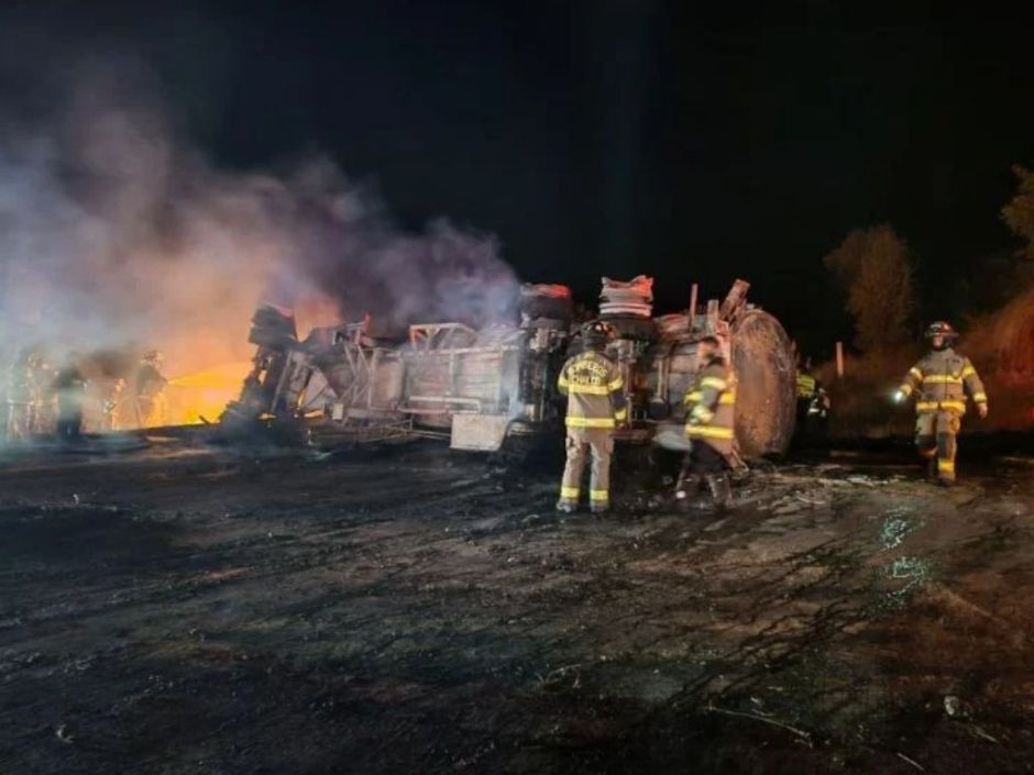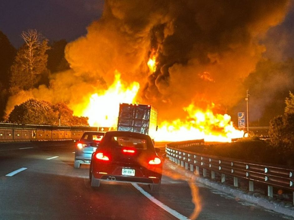 Fatal accidente en la autopista México-Puebla: Pipa ardió en llamas.
