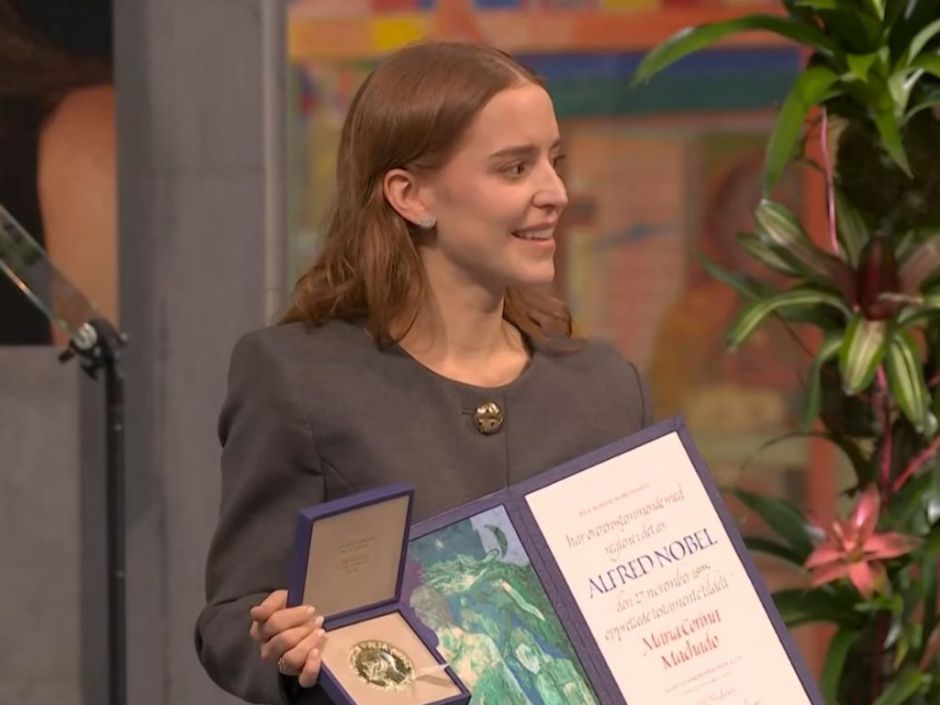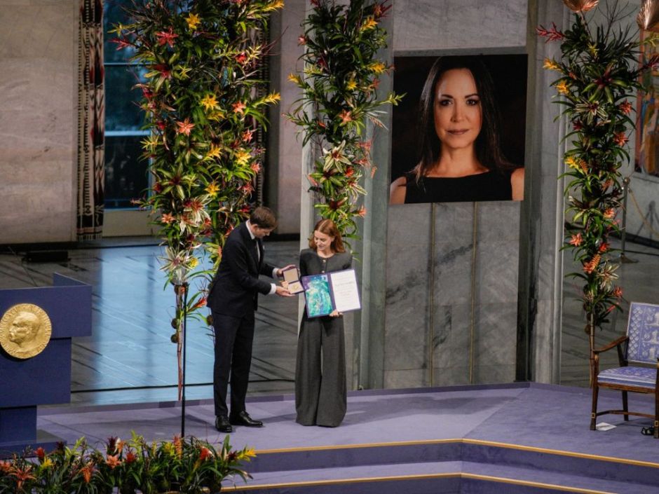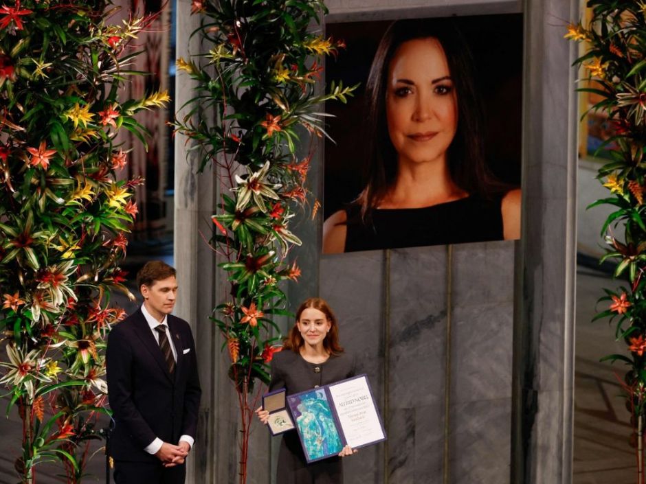 Ana Corina Sosa, hija de María Corina Machado, recibe el Premio Nobel de la Paz de su madre.