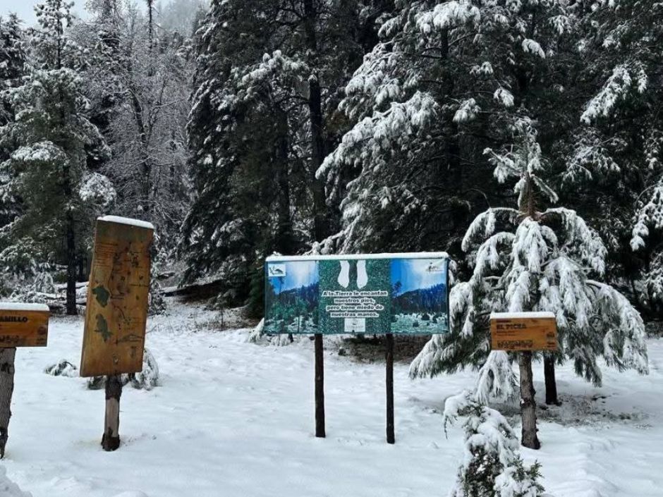 El Cerro Mohinora se pintó de blanco tras intensa nevada en Chihuahua