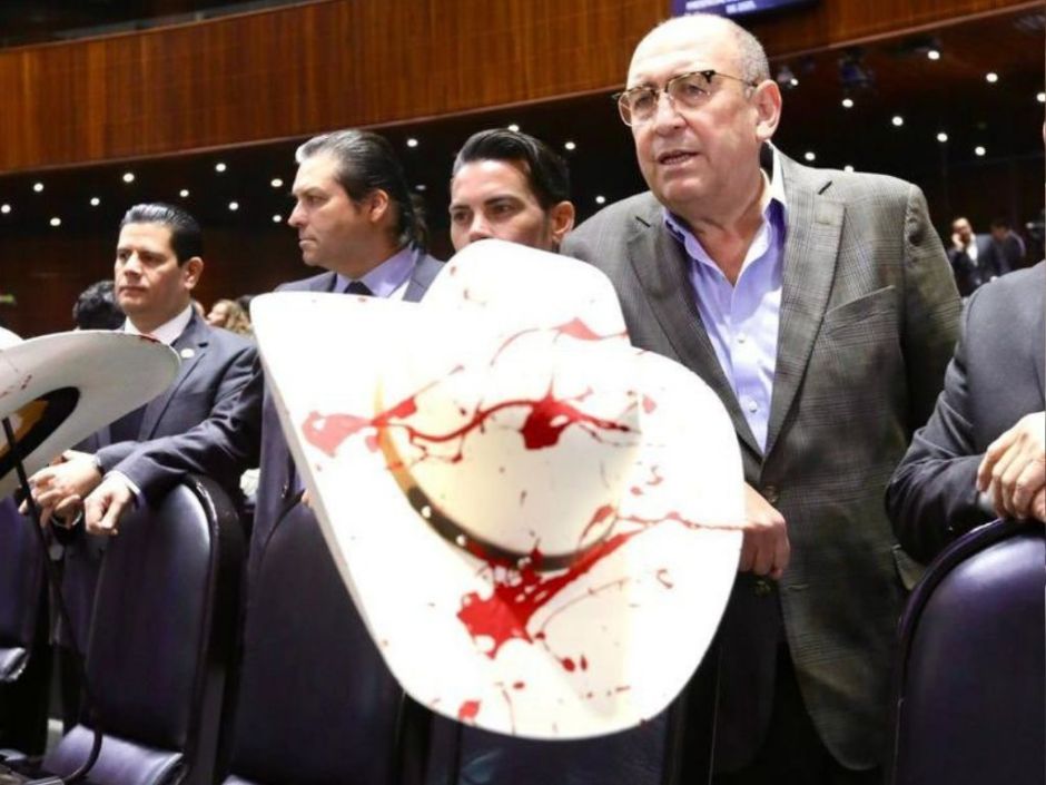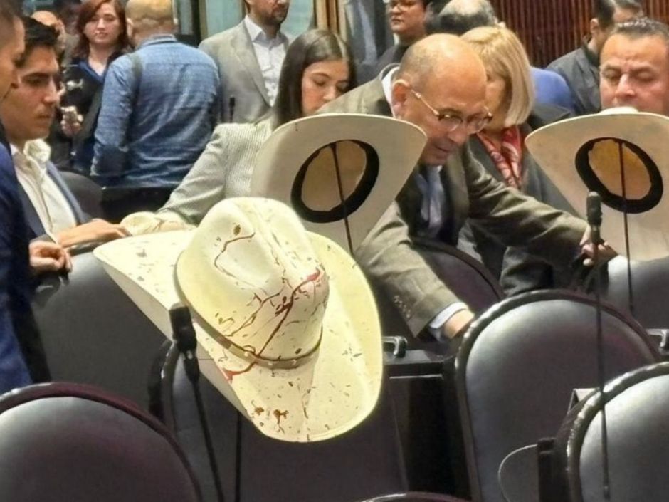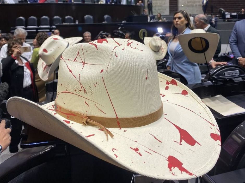 Legisladores guardan un minuto de silencio y colocan sombreros con sangre por asesinato de Carlos Manzo.